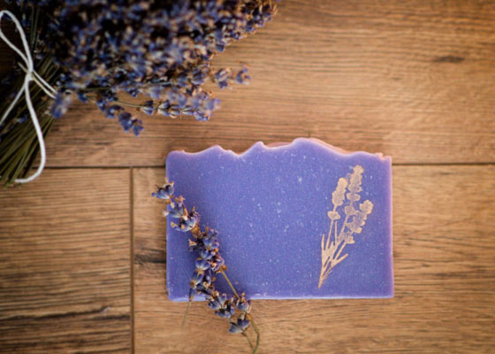 Stilsicher in zartem violett mit goldenen Akzenten bekommt unsere Wohlfühlseife – Lavendel bei Dir bald einen festen Platz am Waschtisch.