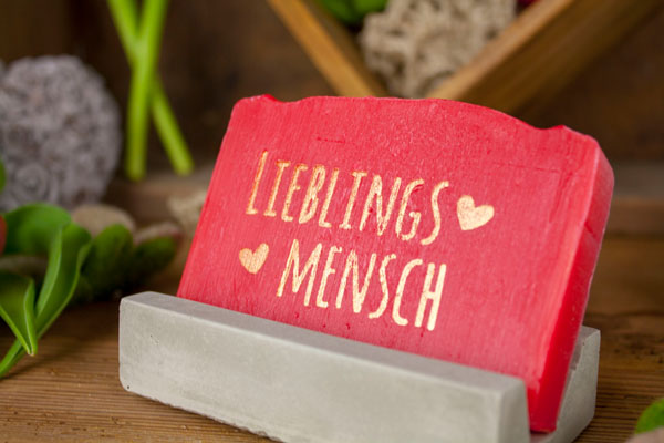 Unsere Seife zum Valentinstag duftet wunderbar nach Ribisel (Johannesbeeren) und ist mit einem goldenen Schriftzug „Lieblingsmensch“ gestempelt. Mit besonders viel Liebe hergestellt, vermittelt diese kleine Liebesbotschaft deine Leidenschaft für den oder die Beschenkte(n) so gut wie sonst nix auf dieser Welt.